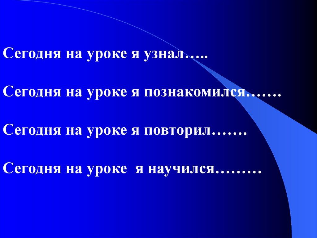 Сегодня на уроке я узнал…..Сегодня на уроке я познакомился…….