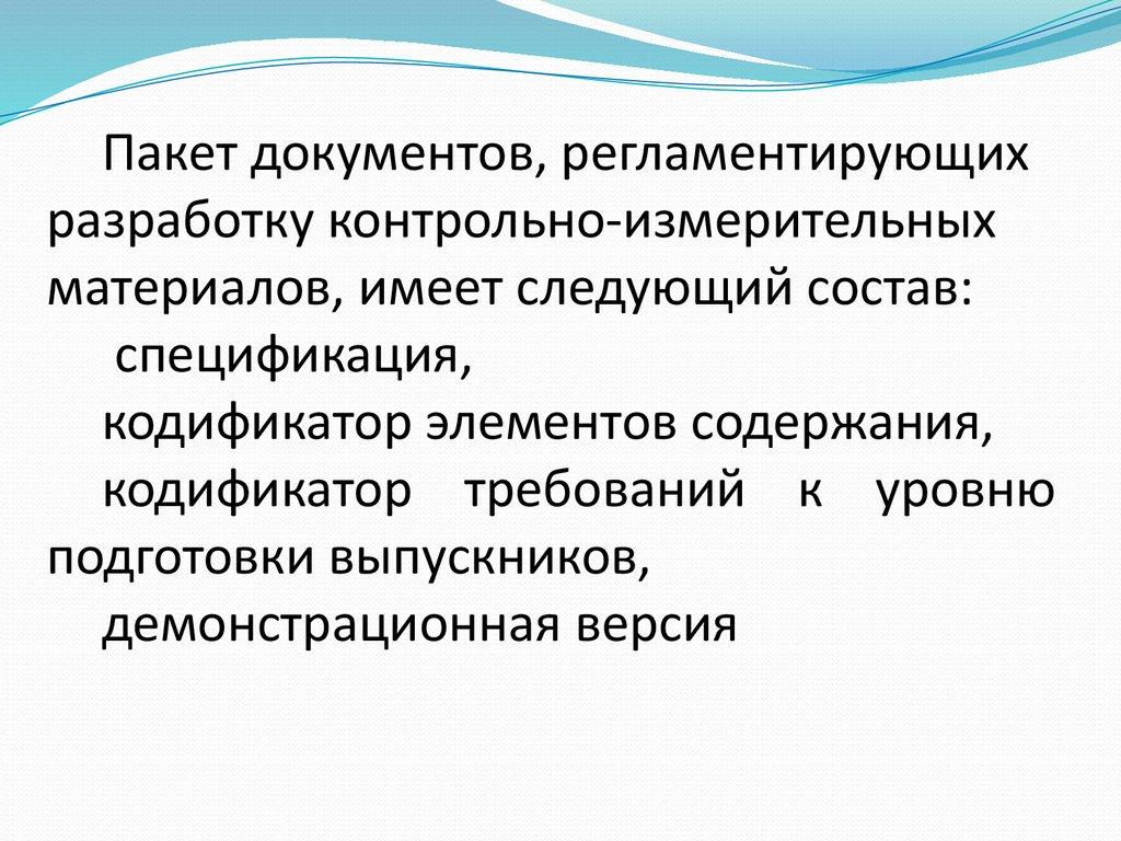 Пакет документов, регламентирующихразработку контрольно-измерительных