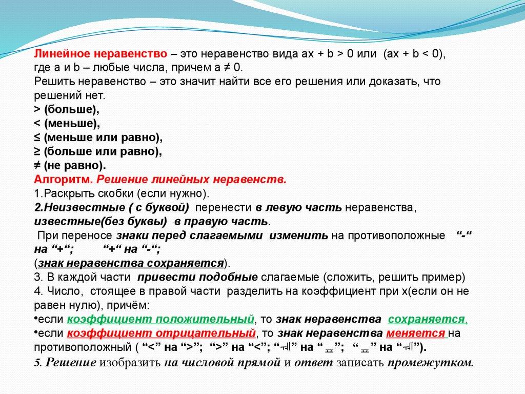 1.2. Знать и понимать термины: «Решение неравенства с одной