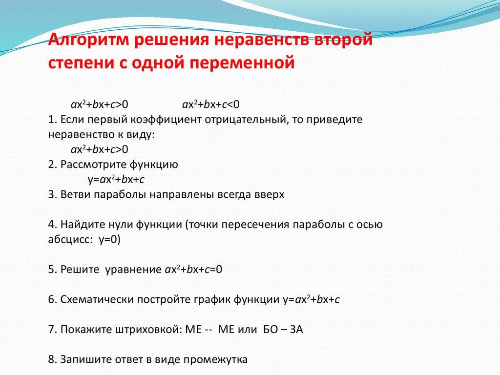 26. Уметь решать квадратные неравенства с одной переменной алгебраическим способом