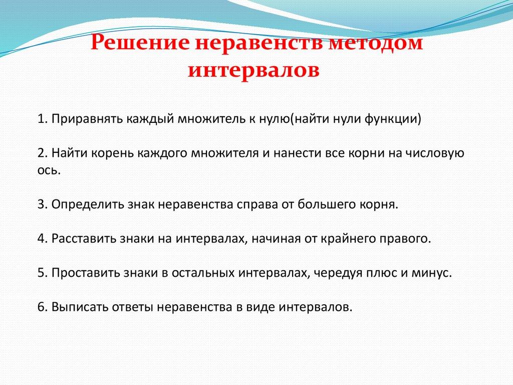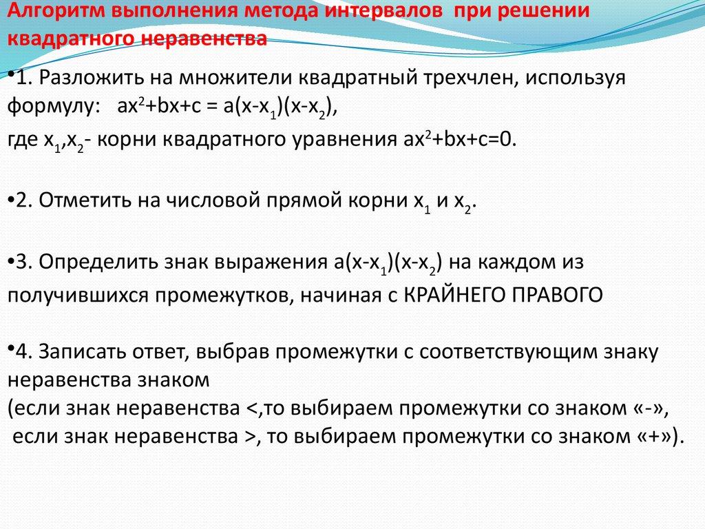 Алгоритм выполнения метода интервалов при решенииквадратного неравенства