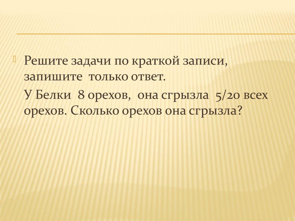 У Белки 8 орехов, она сгрызла 5/20 всех