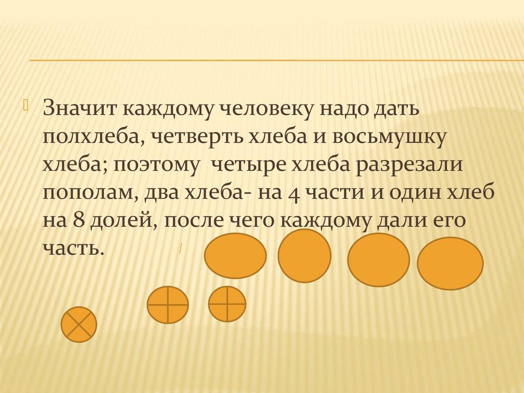 Значит каждому человеку надо датьполхлеба, четверть хлеба и восьмушку