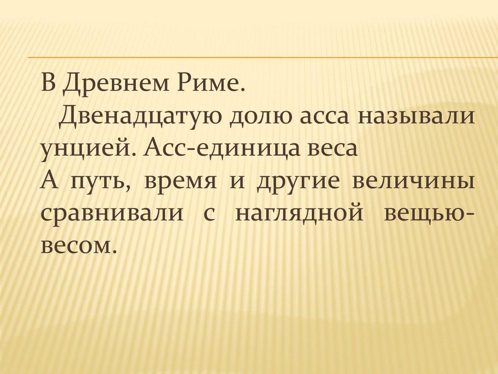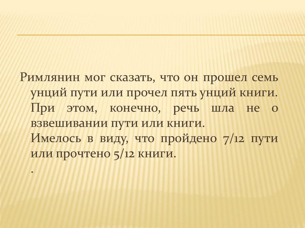 Римлянин мог сказать, что он прошел семьунций пути или прочел пять унций книги.