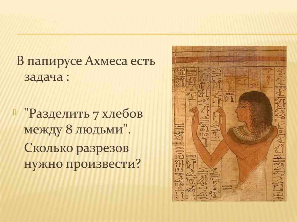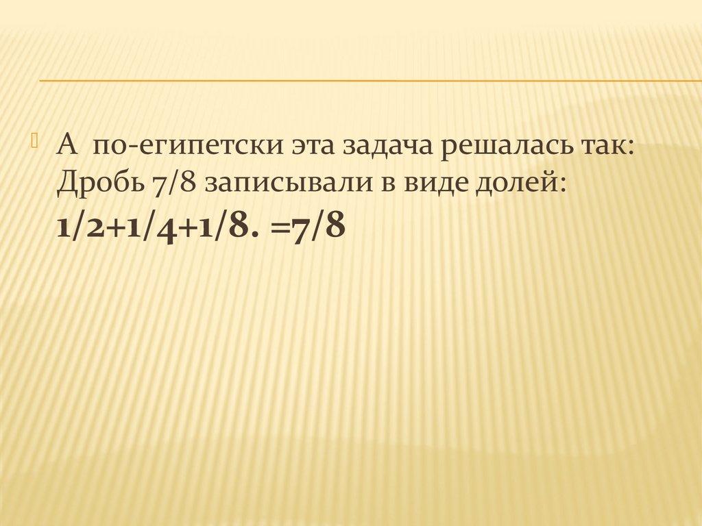 А по-египетски эта задача решалась так:Дробь 7/8 записывали в виде долей: