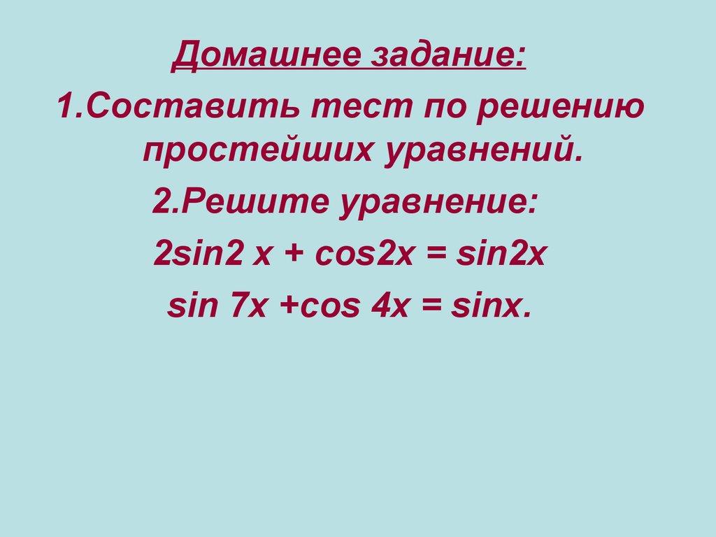 Домашнее задание:1.Составить тест по решению