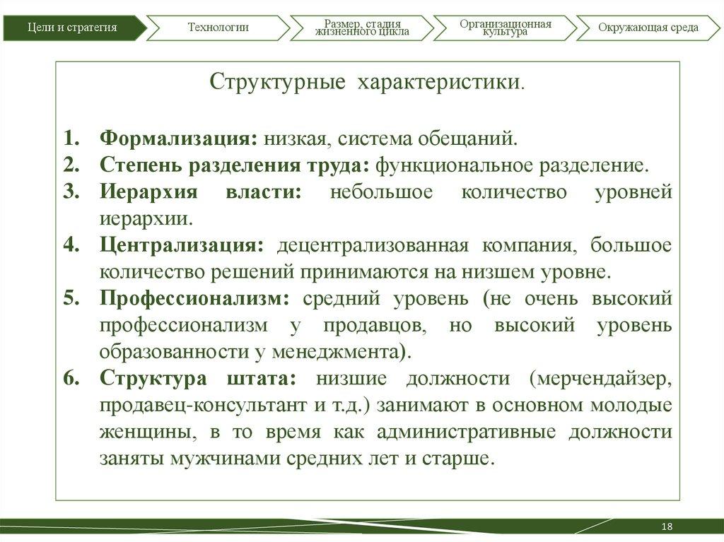 • Структурные характеристики организации . . . . . . 14