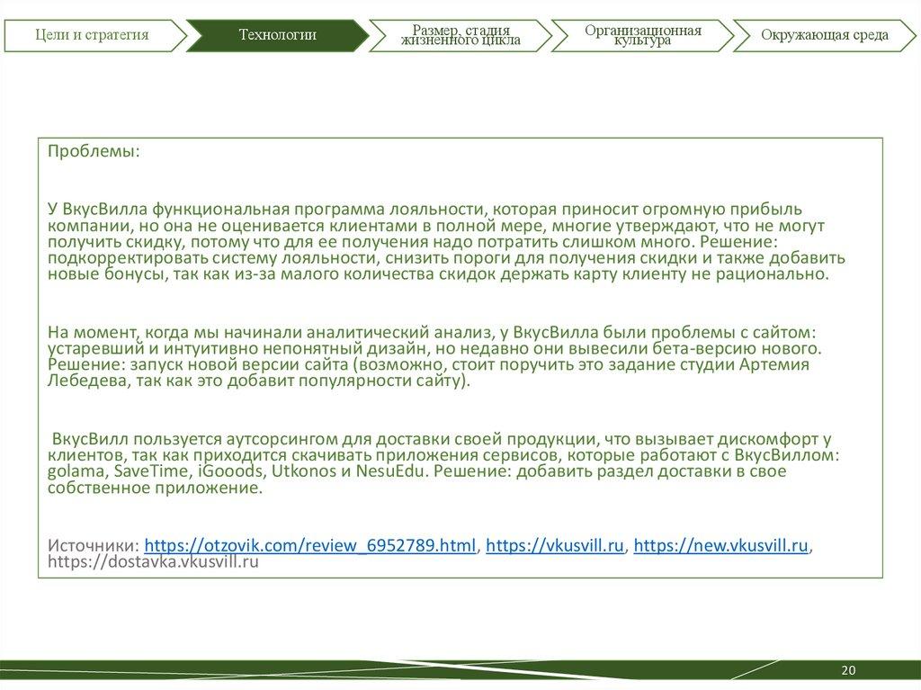 Аналитический отчет, компания ВкусВилл