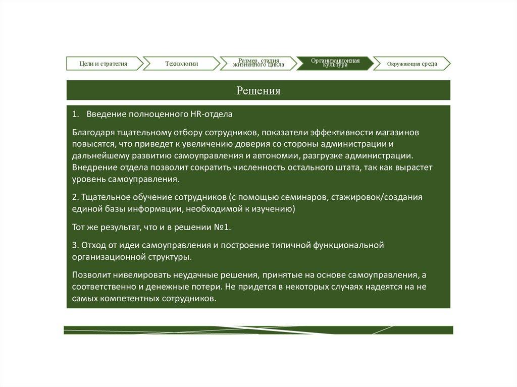 централизованного HR-отдела и дальнейшее обучение сотрудников.