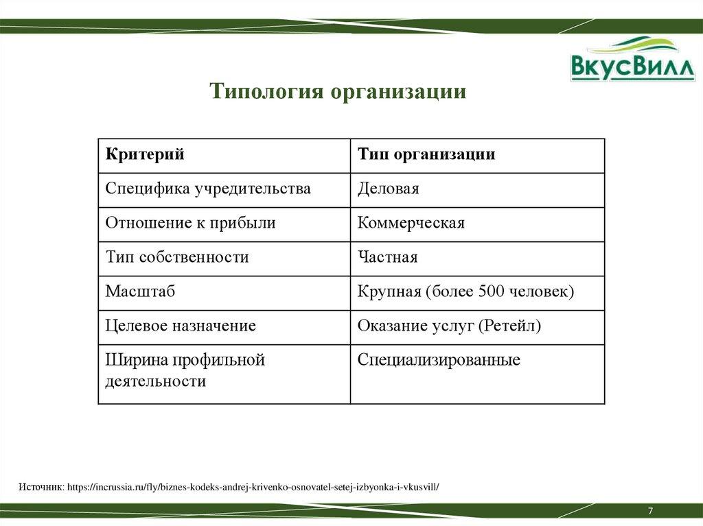 Типология организацииКритерий