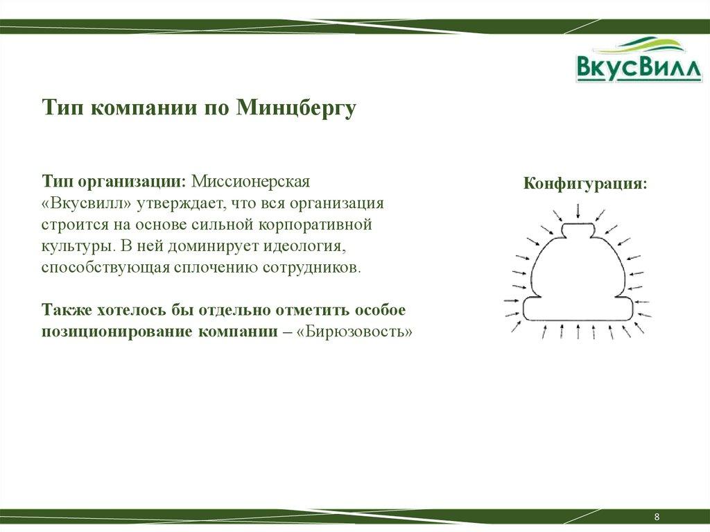 Тип компании по МинцбергуТип организации: Миссионерская