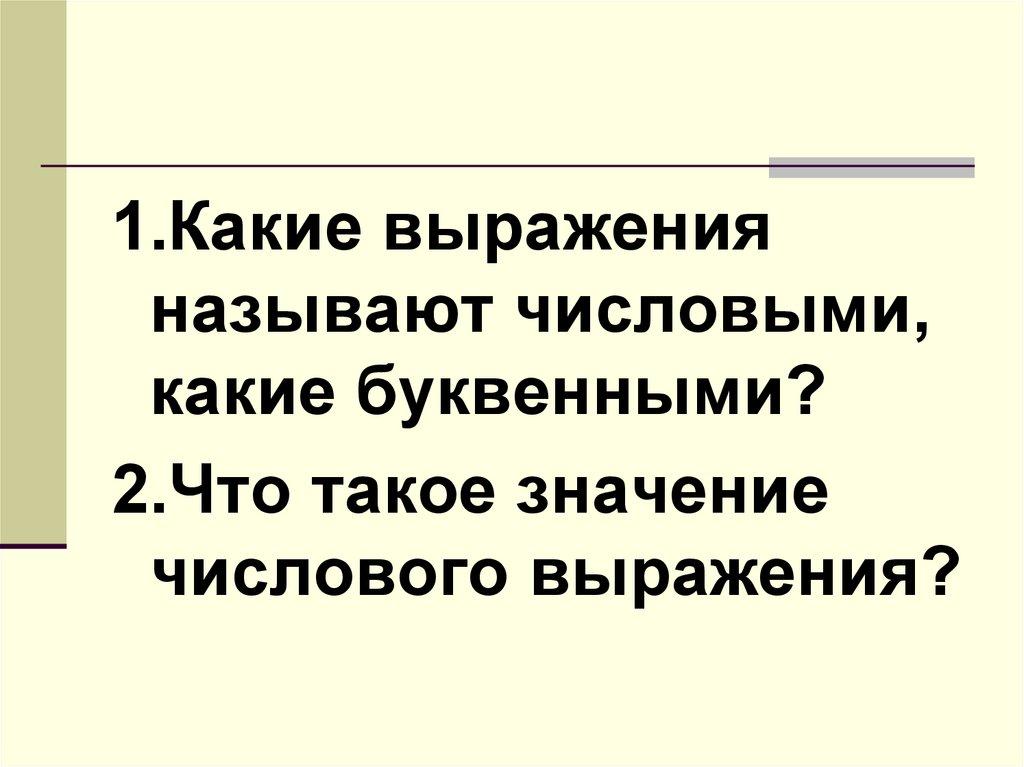 1.Какие выражения вы знаете?2.Как найти значение числового