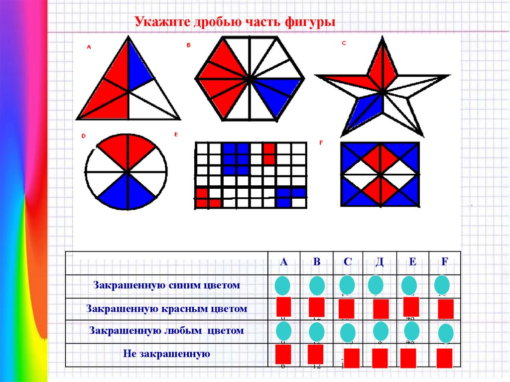 Укажите дробью часть фигурыЗакрашенную синим цветом