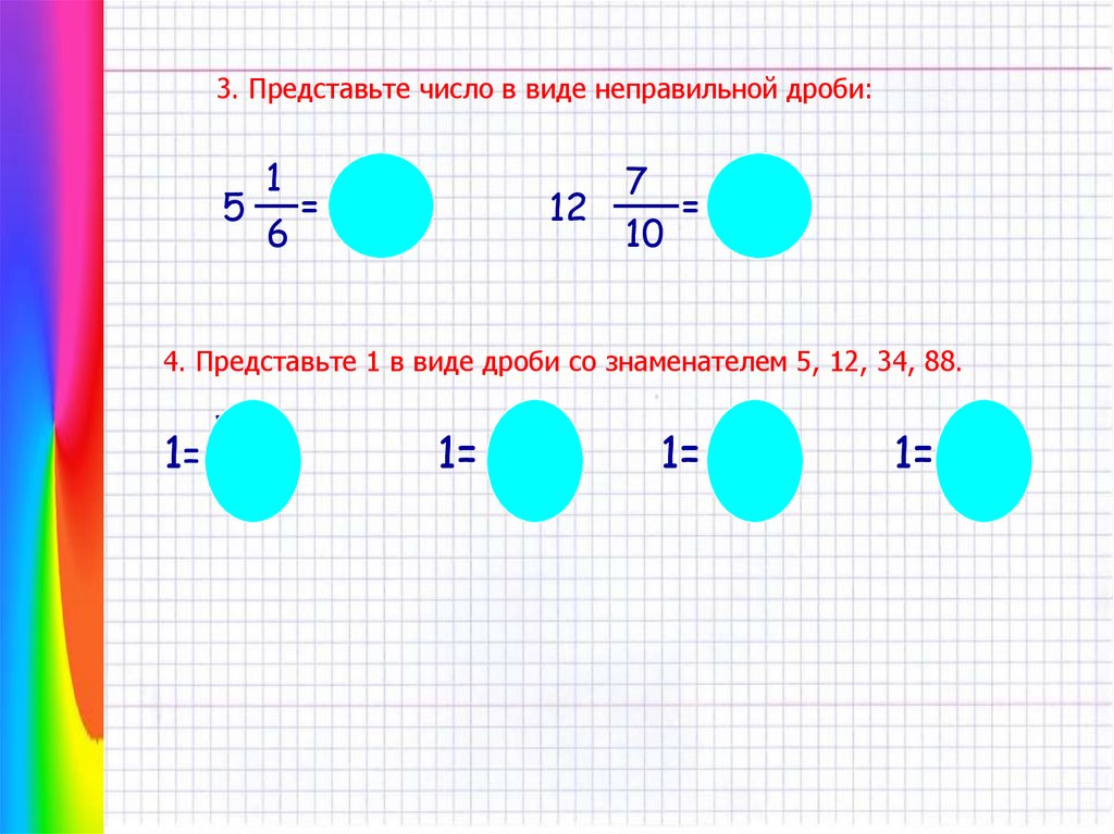 4. Представьте 1 в виде дроби со знаменателем 5, 12, 34, 88.