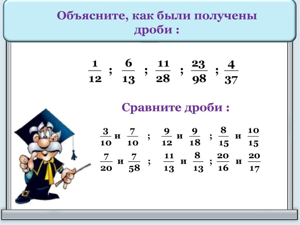 Объясните, как были полученыдроби :