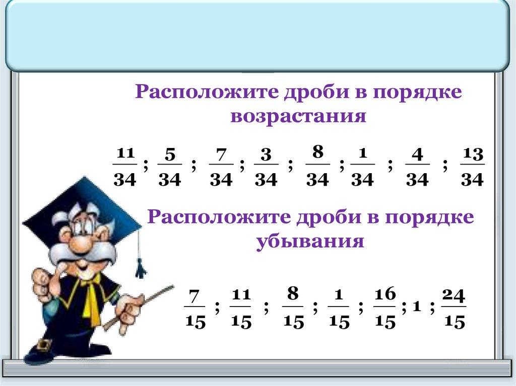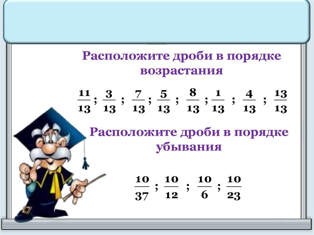 Расположите дроби в порядке