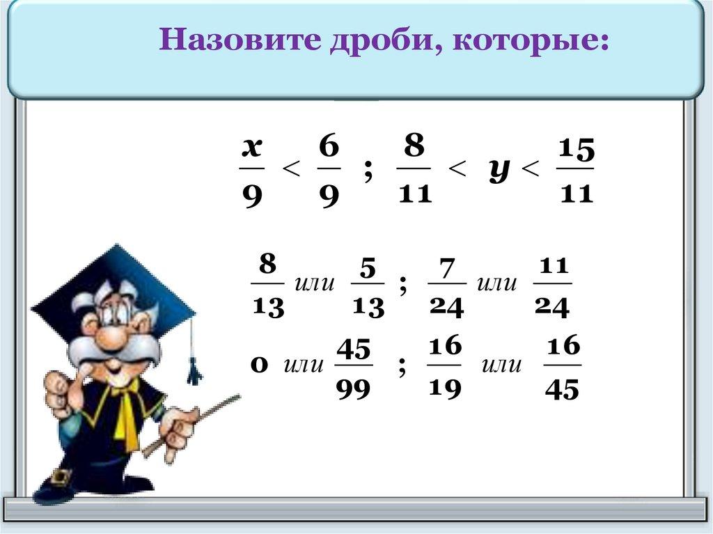 Назовите дроби, которые:х