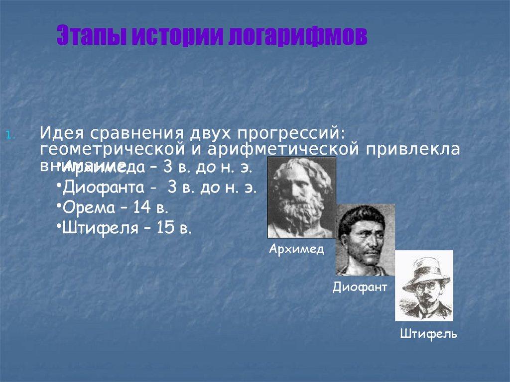 Этапы истории логарифмов1.