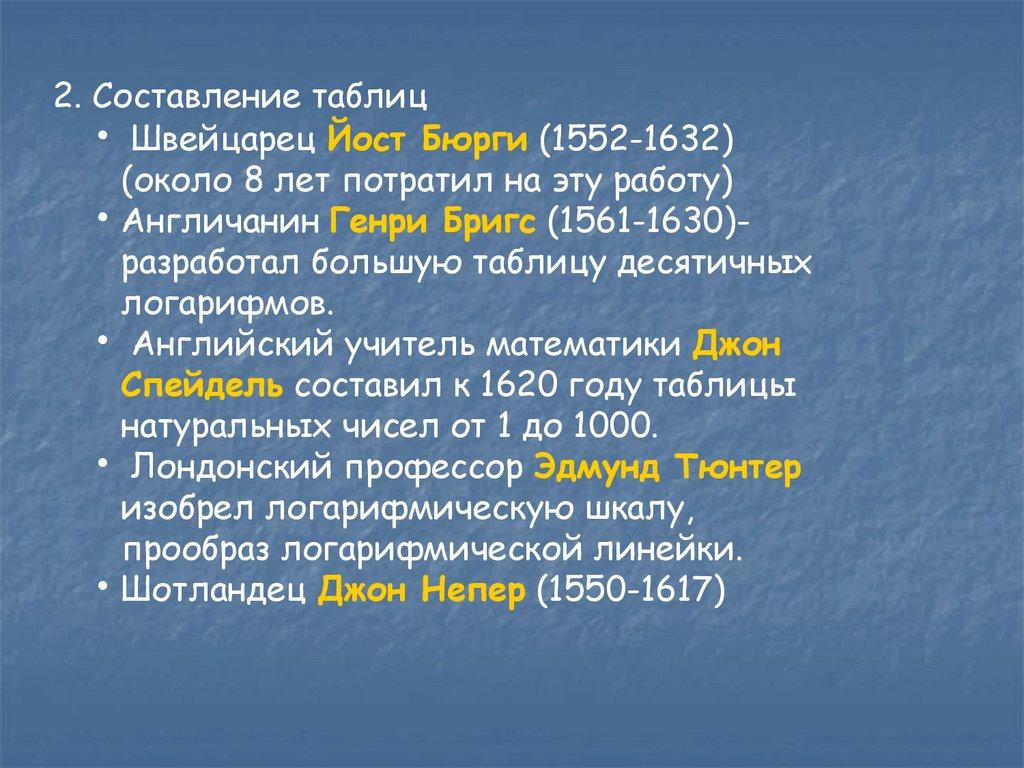 «Изобретение логарифмов,сокращая вычисления нескольких