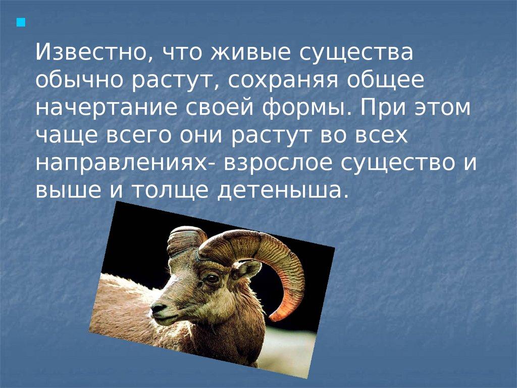 Известно, что живые существаобычно растут, сохраняя общее