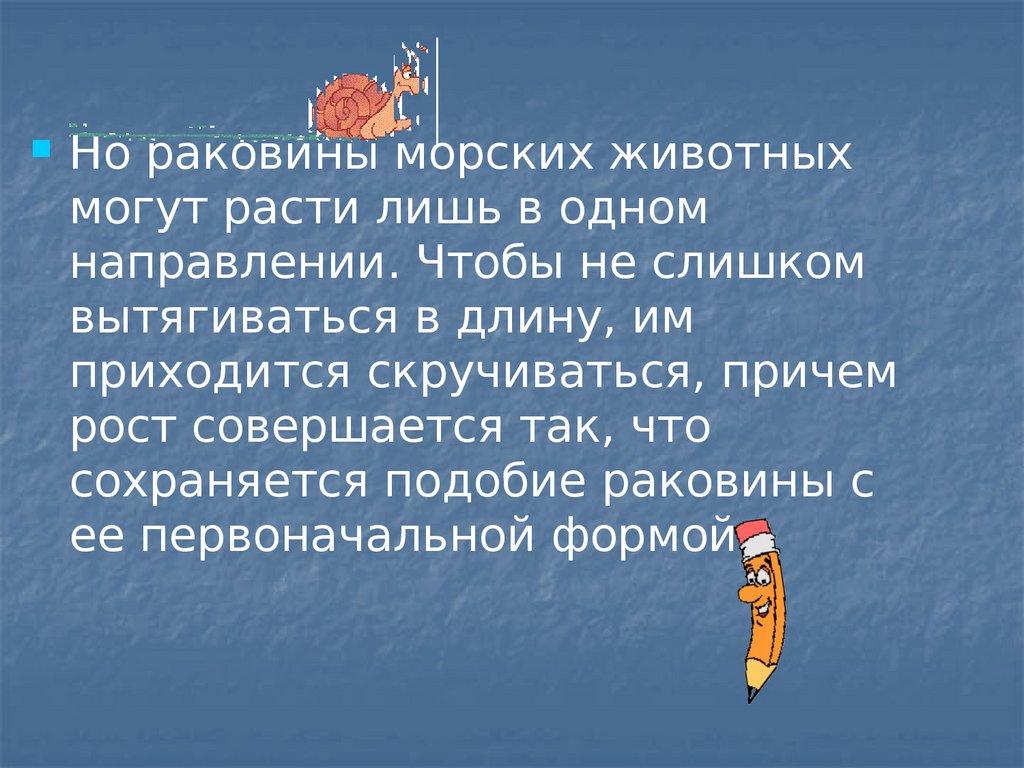 Но раковины морских животныхмогут расти лишь в одном
