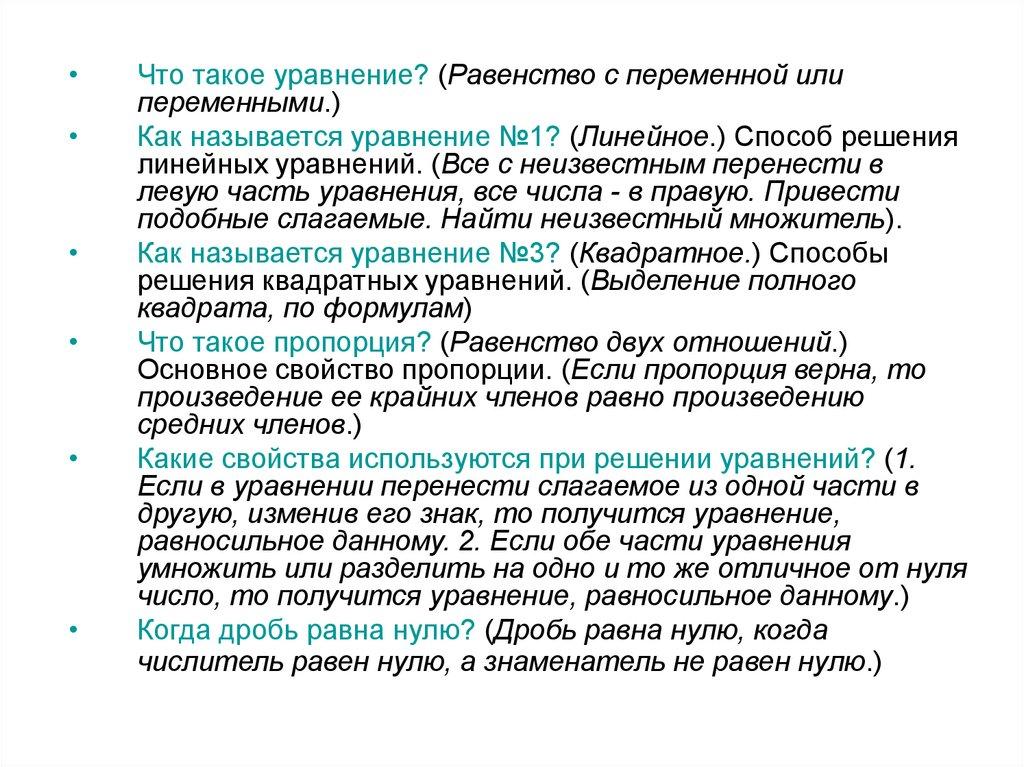 Что такое уравнение? (Равенство с переменной или