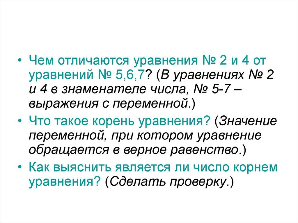• Чем отличаются уравнения № 2 и 4 отуравнений № 5,6,7? (В уравнениях № 2