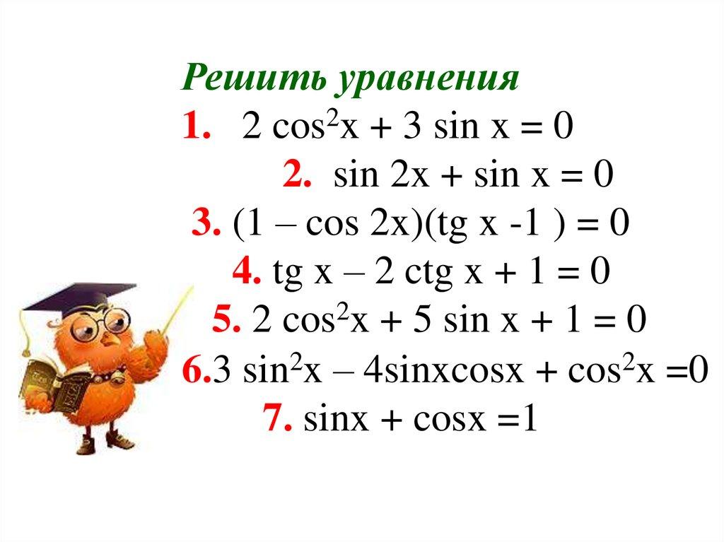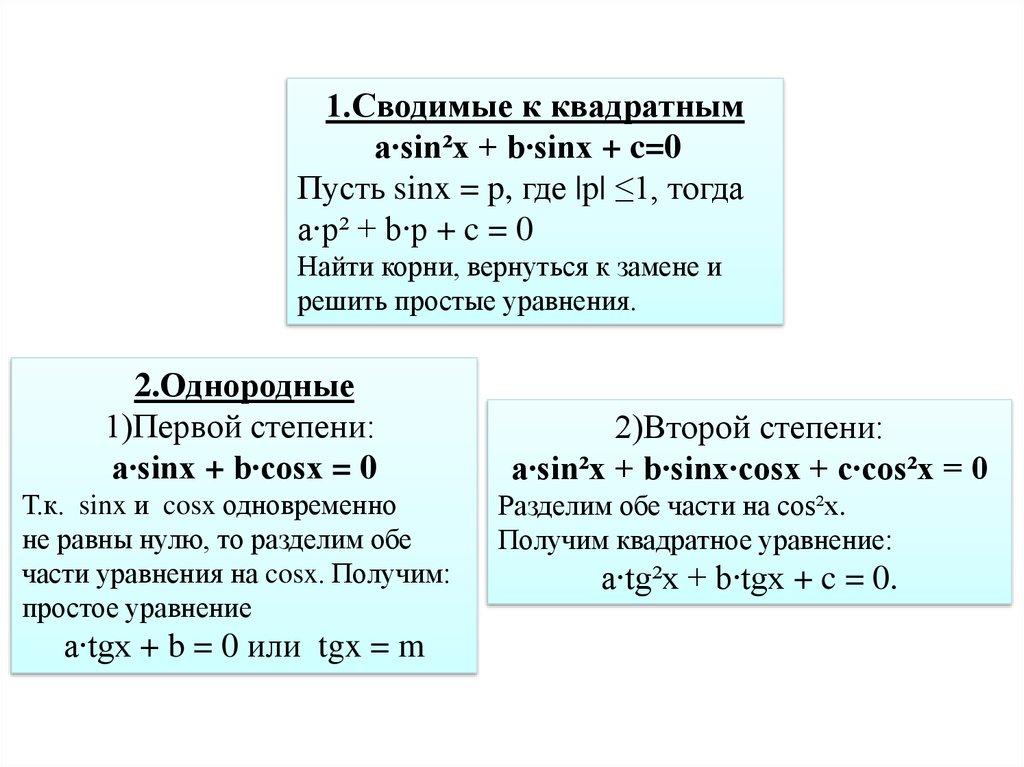 1.Сводимые к квадратнымa∙sin²x + b∙sinx + c=0