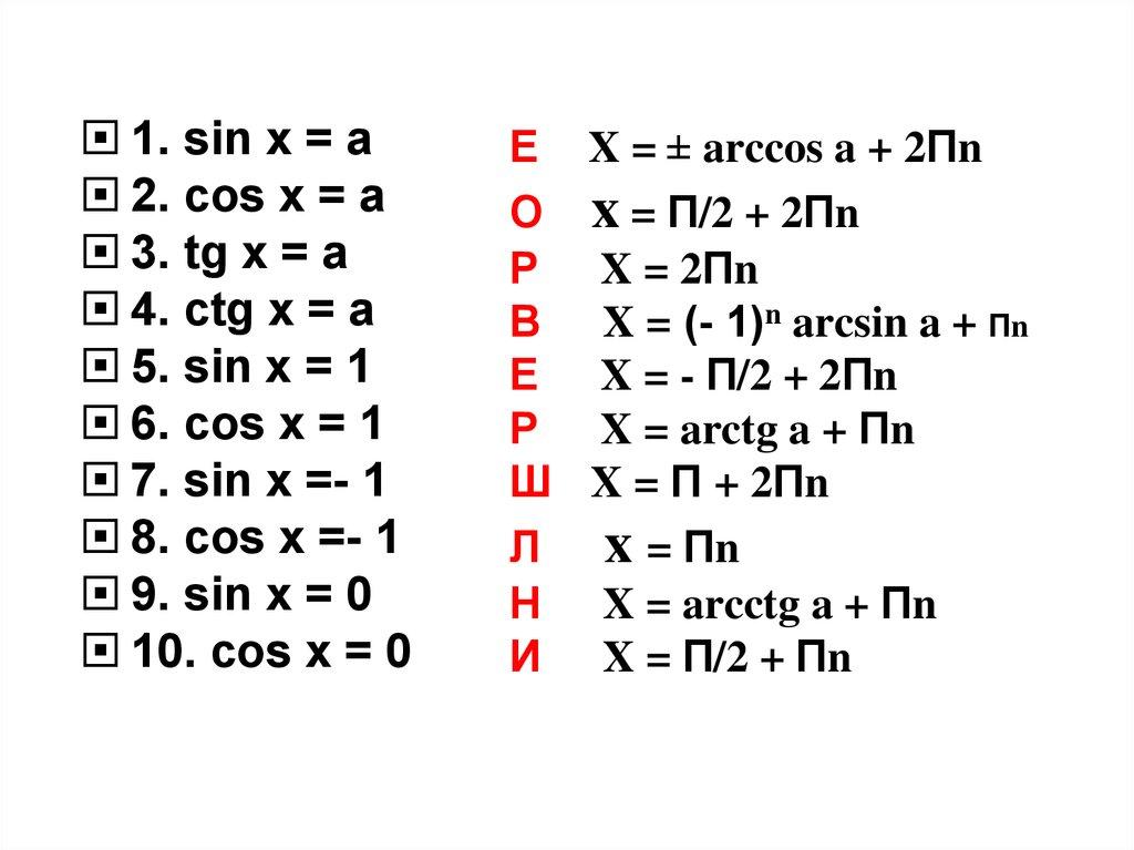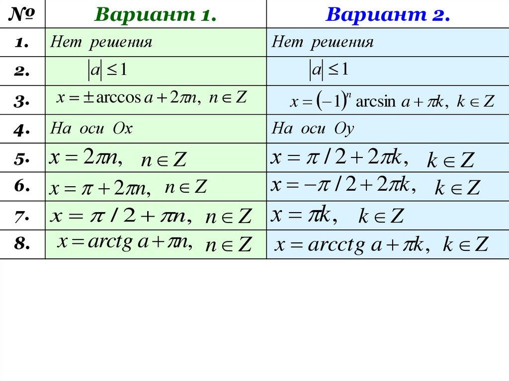 уравнения cos x = a при а > 1 уравнения sin x = a при а > 1
