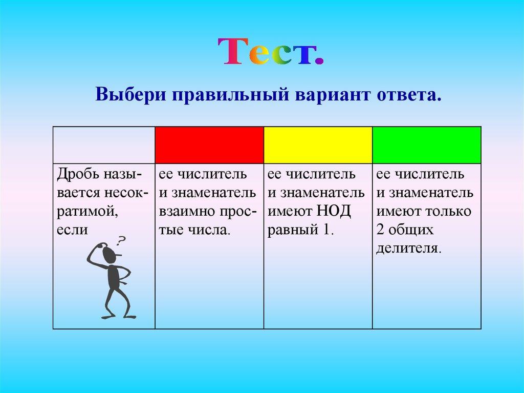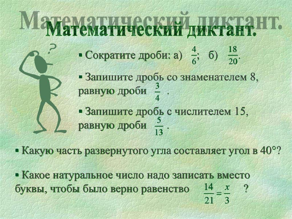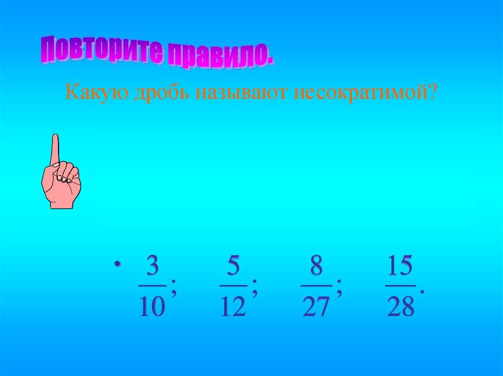 Какую дробь называют несократимой?• Дробь, числитель и знаменатель
