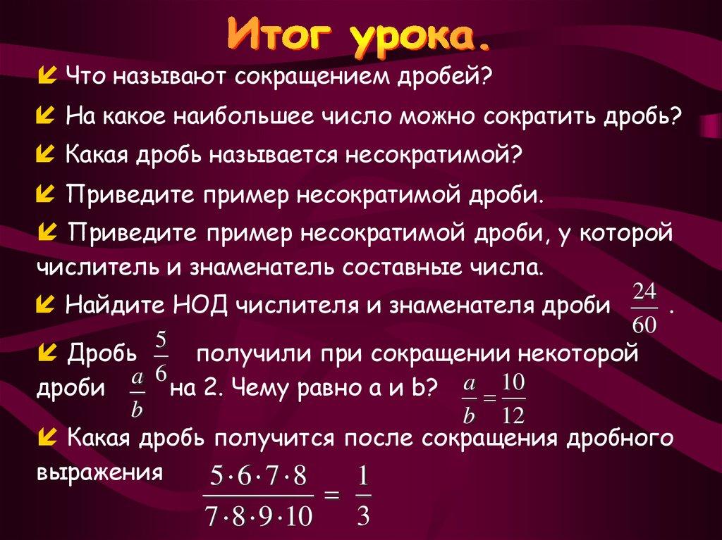 Что называют сокращением дробей?На какое наибольшее число можно сократить дробь?