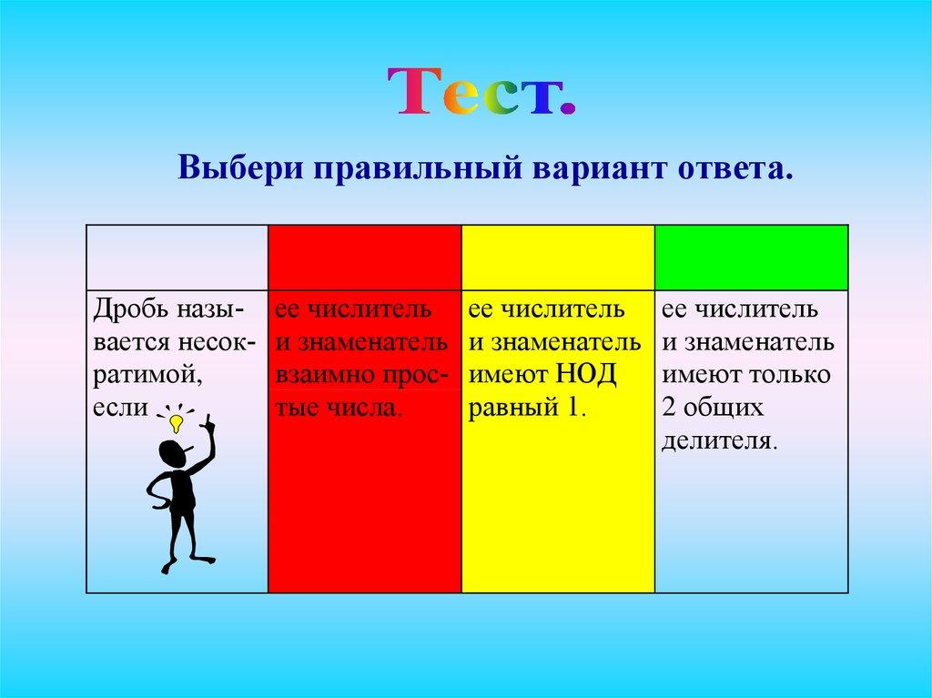 Выбери правильный вариант ответа.Дробь называется несократимой,