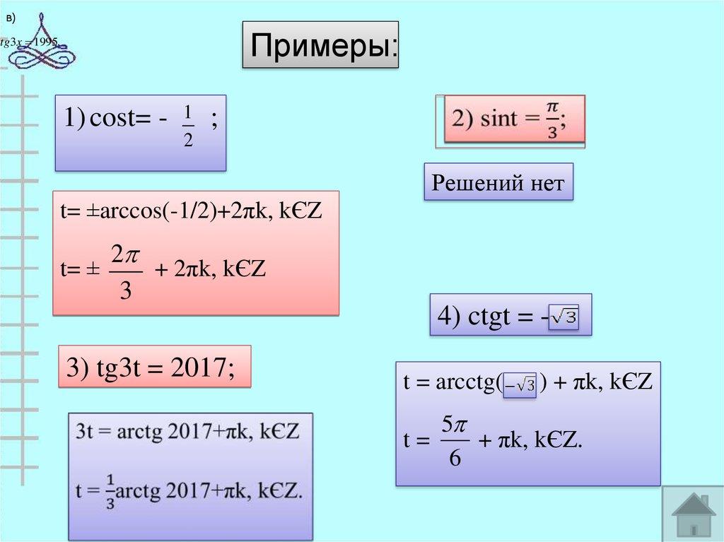 3. tgt = а, аЄRt = arctg а + πk‚ k ЄZ