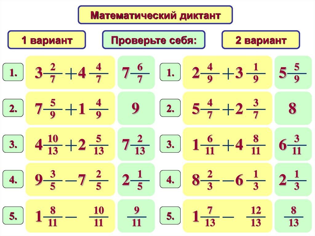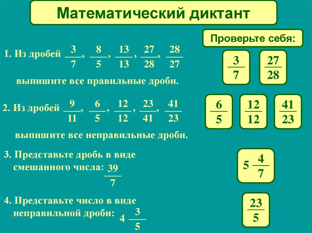 Математический диктантПроверьте себя: