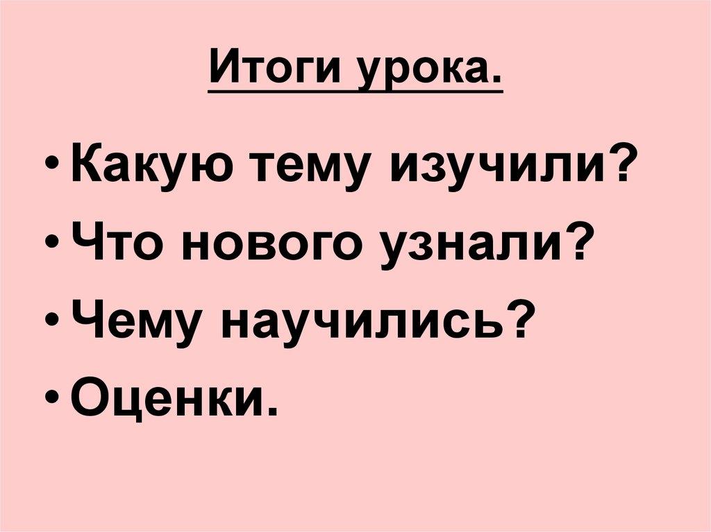 Итоги урока.• Какую тему изучили?