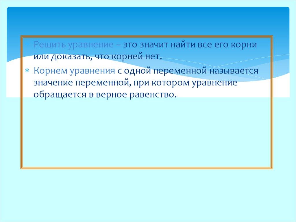 Решить уравнение – это значит найти все его корниили доказать, что корней нет.