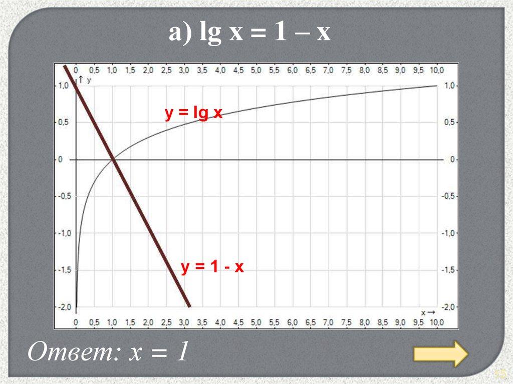 а) lg x = 1 – xy = lg x