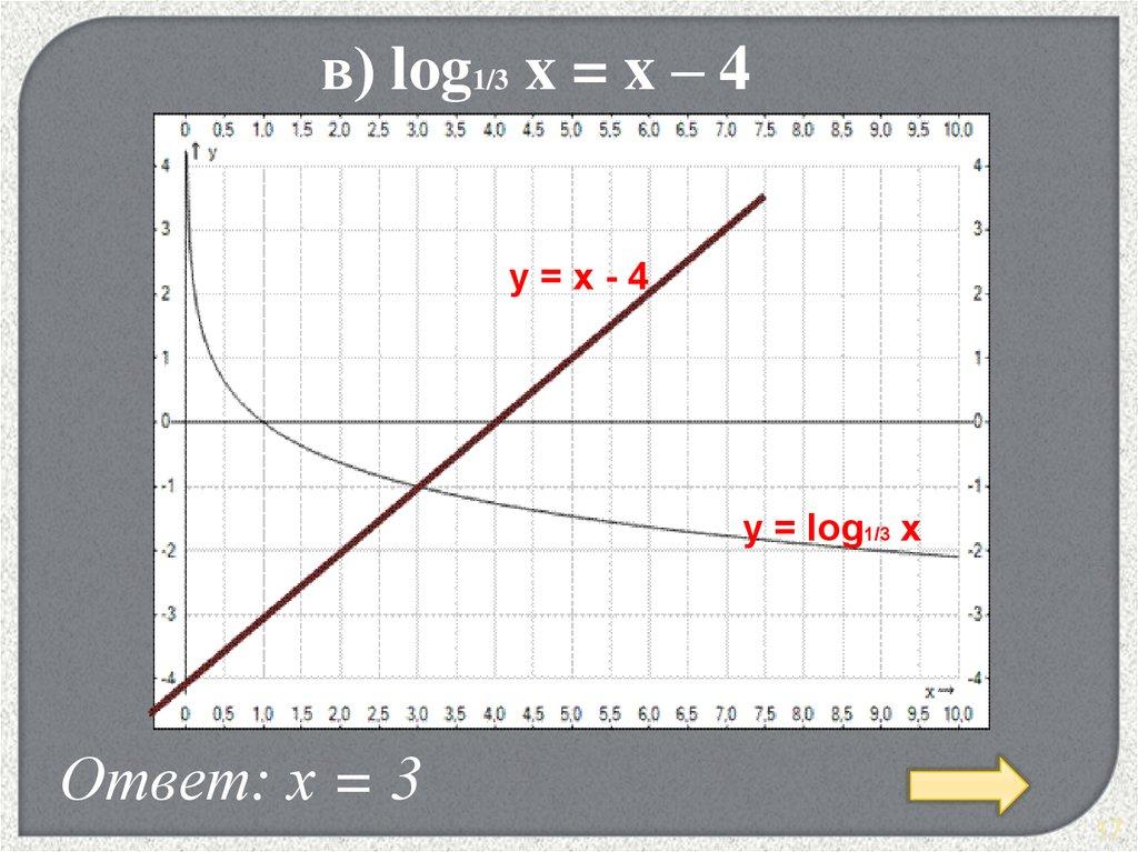 в) log1/3 x = x – 4y=x-4