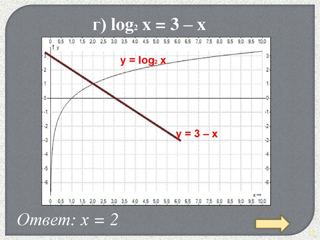 г) log2 x = 3 – xy = log2 x