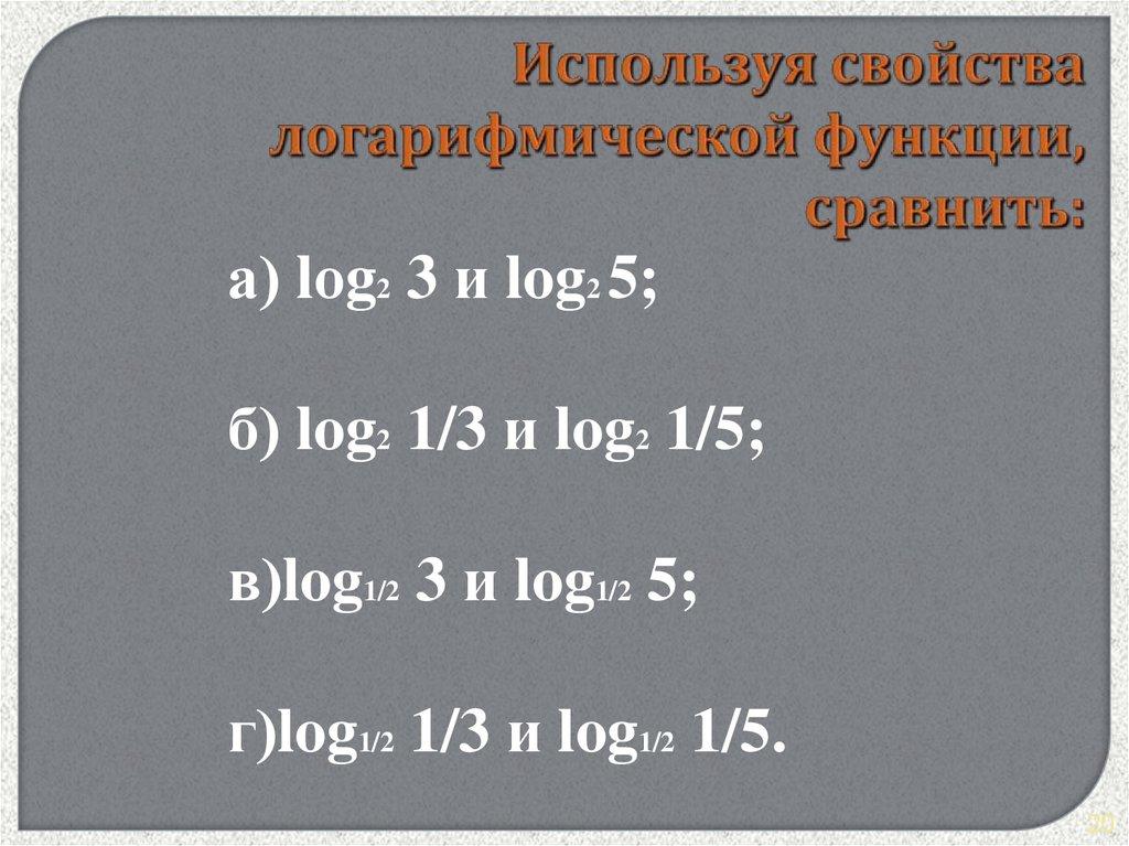 а) lоg2 3 и log2 5;б) log2 1/3 и log2 1/5;
