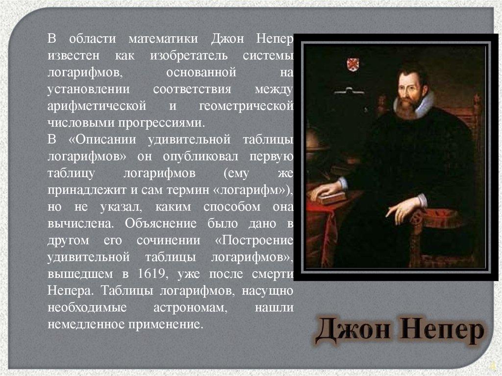В области математики Джон Неперизвестен как изобретатель системы