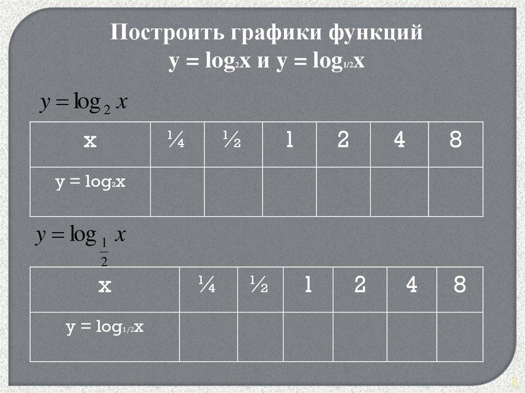 Построить графики функцийy = log x и y = log x