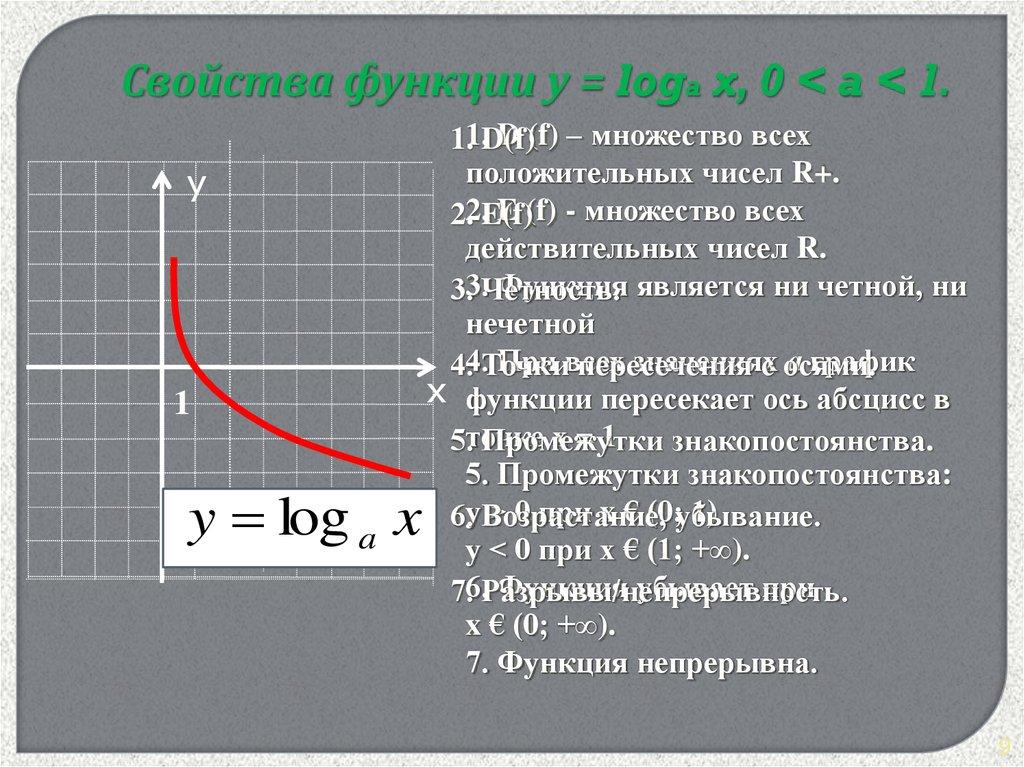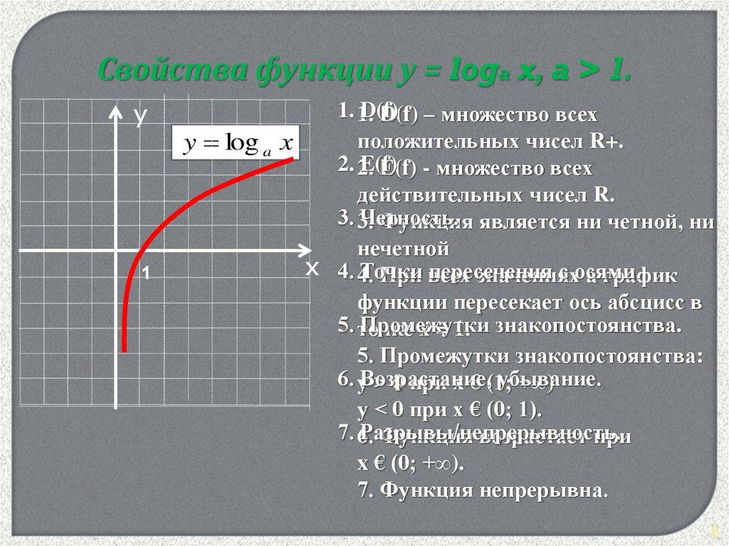 7. Логарифмическая функция непрерывна.