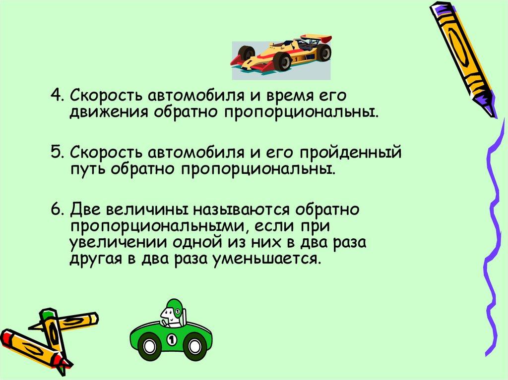 4. Скорость автомобиля и время егодвижения обратно пропорциональны.