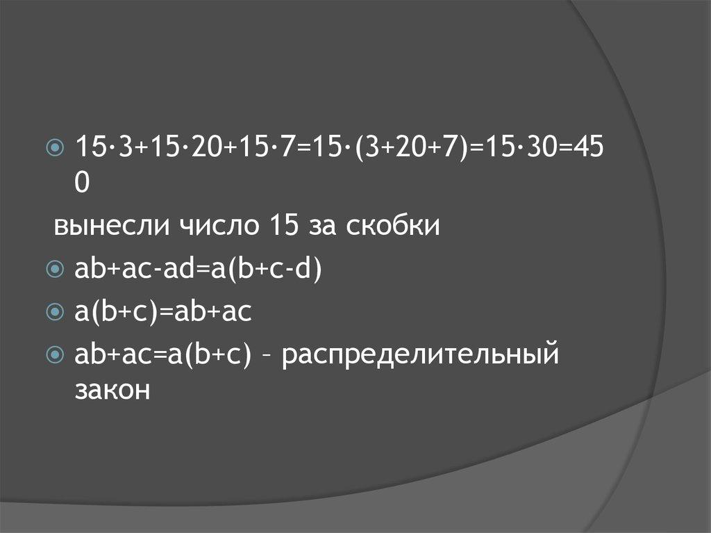 ab+ac=a(b+c) – распределительный