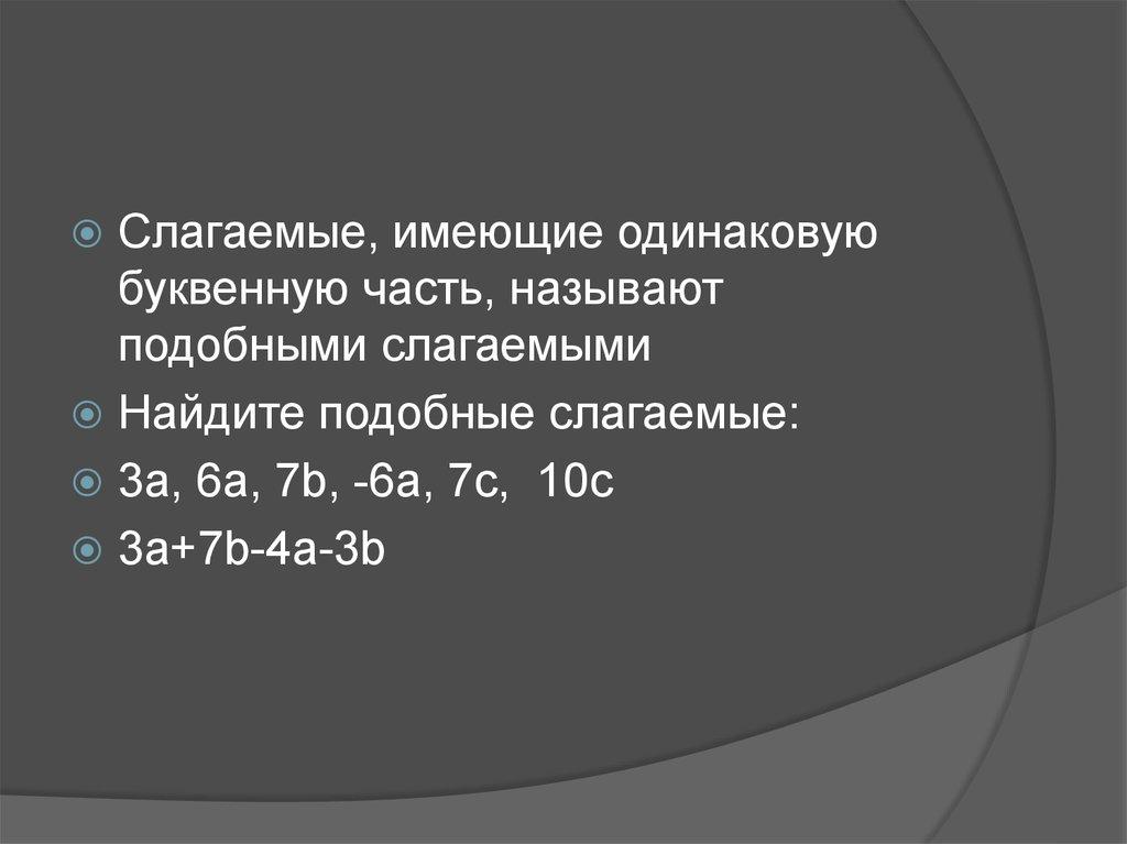 Слагаемые, имеющие одинаковуюбуквенную часть, называют