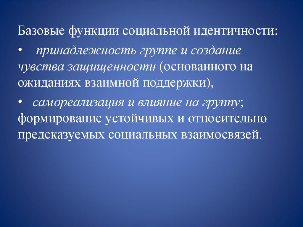 Базовые функции социальной идентичности:• принадлежность группе и создание