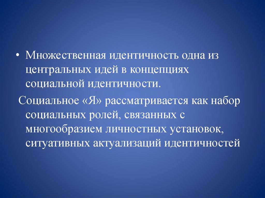 • Множественная идентичность одна изцентральных идей в концепциях