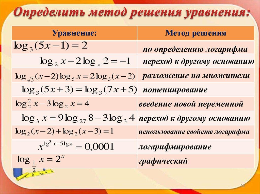 13. 5. Уравнения, решаемые с помощью применения свойств логарифма