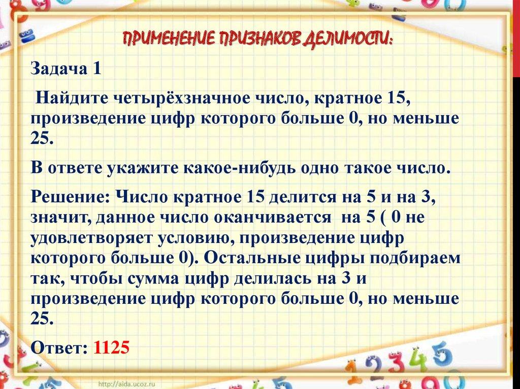 ПРИМЕНЕНИЕ ПРИЗНАКОВ ДЕЛИМОСТИ:Задача 1